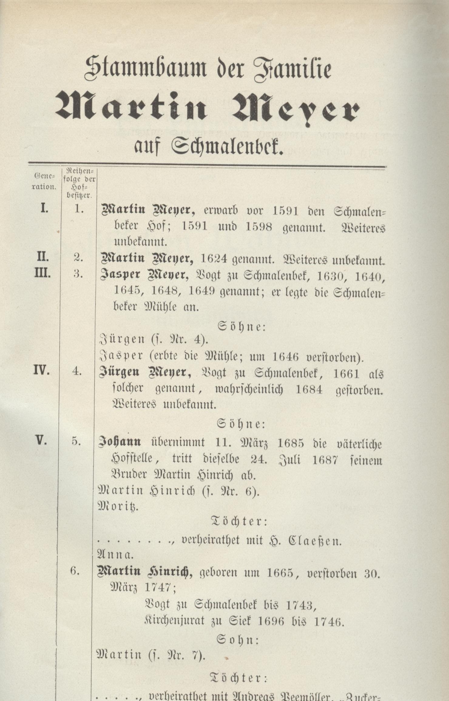 wird wieder ein Besitzer des Schmalenbeker Hofes genannt, Martin Meyer. Sein Name findet sich unter
